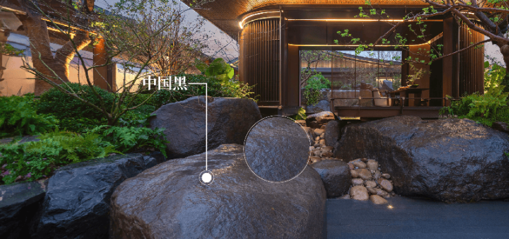 苏博同款“中国黑”,以其深邃的色泽和独特的质感,成为示范区中一道永恒的风景。每块巨石,需要近百吨的吊车耗费数天来叠石成景。在这里,每一位来访者都能在静谧中感受到历史的厚重,体验到尊贵的礼遇。