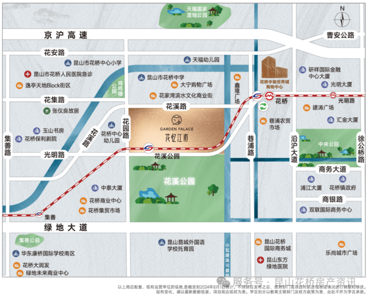 位置:昆山市花桥镇花园路东侧、花溪路南侧,紧邻苏州地铁11号线花溪公园站(步行约156米)