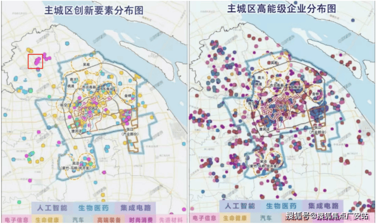 如下图所示,嘉定北的创新要素(高校+科研院所)在五个新城中是非常密集的。