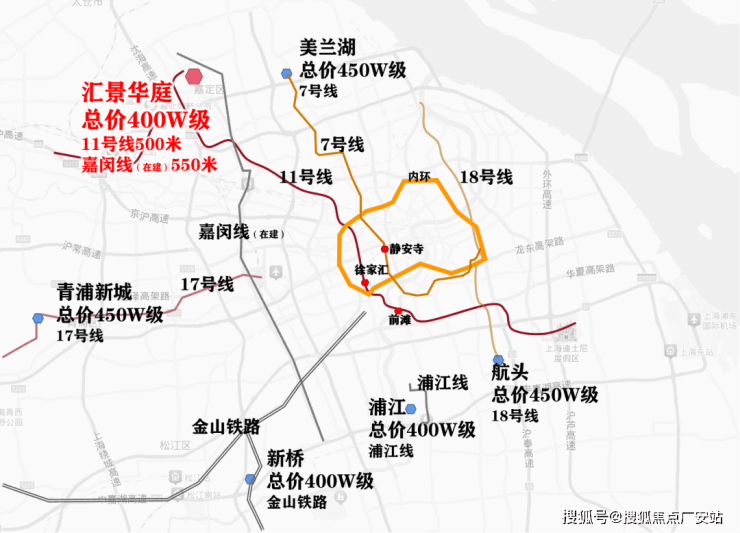 而通过直线距离仅约200米的嘉闵线城北路站(在建),3站可达南翔,8站可达虹桥!