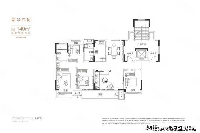 大华·梧桐院湖景洋房,区域内罕有实现四开间朝南的墅质洋房,建面约134-140㎡,独立电梯入户,最大约14.8米南向开间,约5.2米大面宽客厅,三卧朝南,套房式主卧拥享飘窗(或露台),是理想洋房范本。