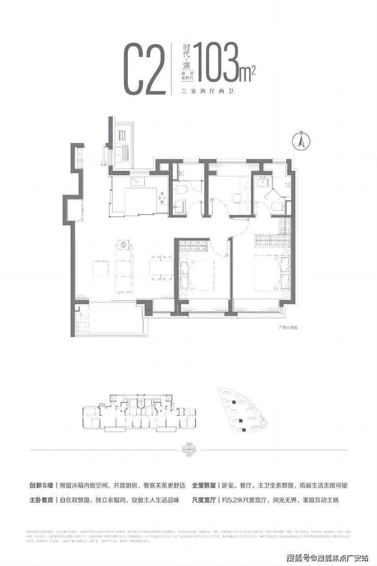 在建面约110㎡ 户型已有的两点之上再度升级,简约面144㎡户型更加匹配三代同堂、二胎之家。