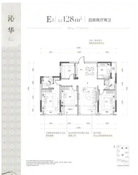 户型:主力为108-139㎡四房,部分户型四开间朝南,采光优越2