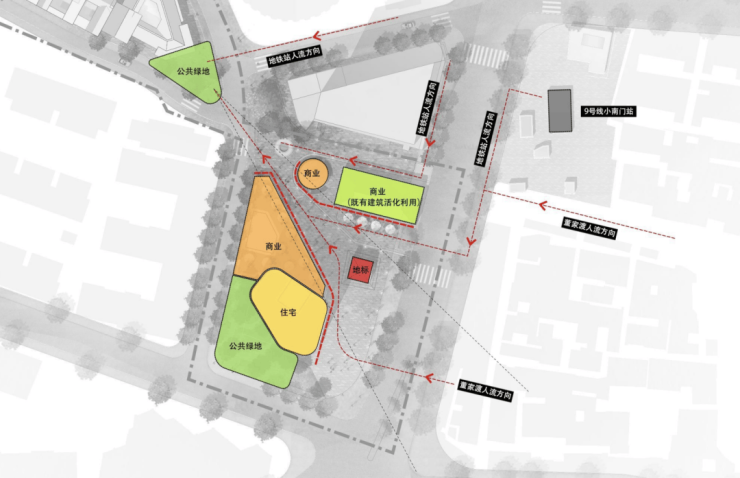 其中新增商业量为10543㎡,历史建筑活化为5900㎡,文保单位活化为5228㎡;具体分布如下: