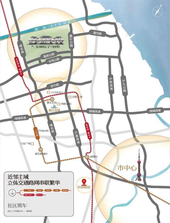 配备社区班车直达11号线嘉定北——嘉闵线。