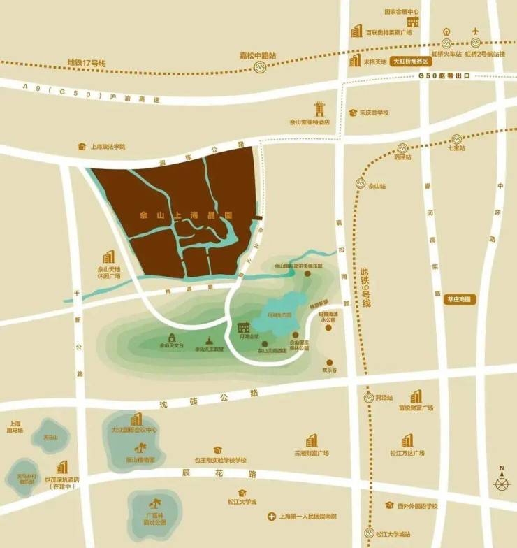 生态资源就更加不用说了,周围有佘山高尔夫俱乐部、月湖雕塑公园、辰山国家植物园。