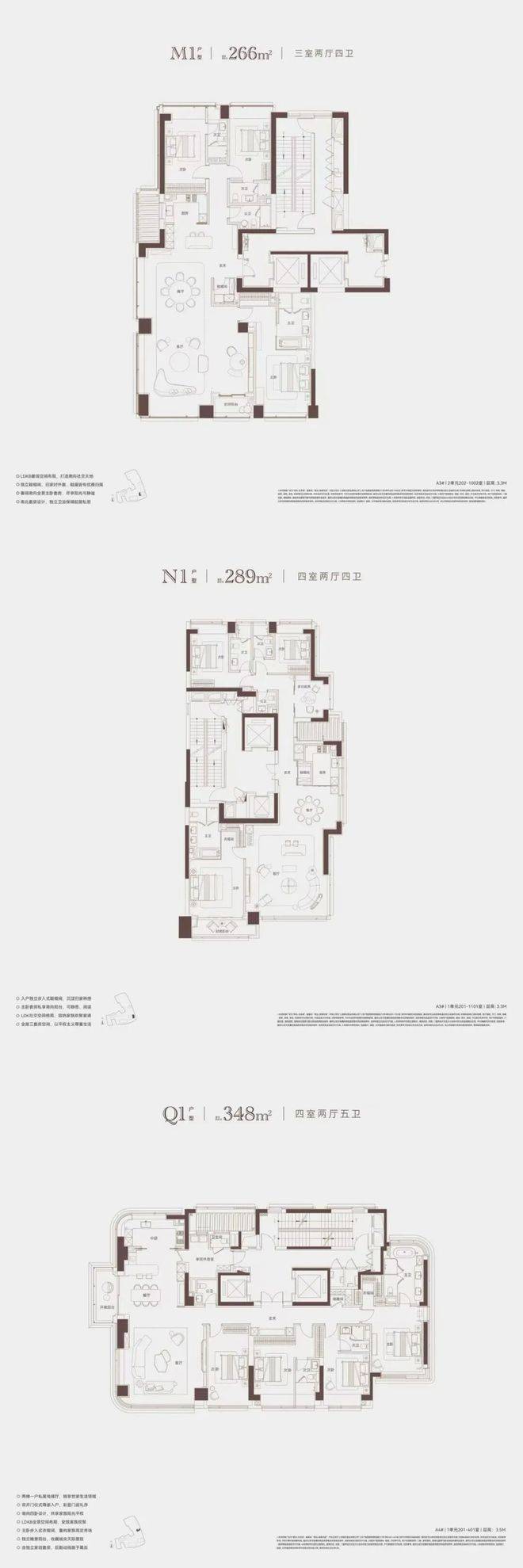 项目主推建面约266-348㎡户型图已出炉: