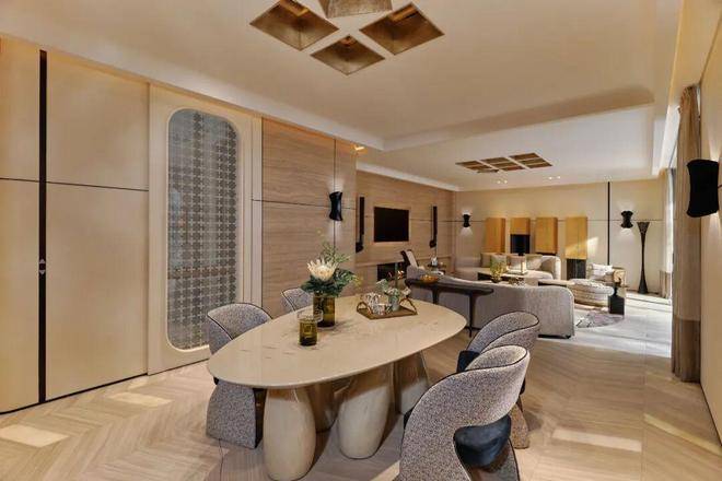 在这里,男女主人可尊享各自独立的沙龙空间,也分别配有珍宝阁和休闲区,可展示自身的爱好与收藏,可与好友相约小聚下午茶,也可享受独酌。这无疑是家中可唤醒感官的角落,让自身的品格与态度得以安放,让家空间与居者,相互滋养,相互成就。