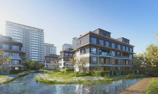 项目用绿带引水入园,将滨河公园“种”在社区,打造滨水、抱水的社区中央公园,形成叠墅区绿色岛居景观,筑造高品质墅区。