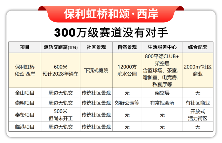 原因很简单:保利虹桥和颂·西岸在产品、社区、周边配套、板块能级上,全面碾压了当前上海同总价段的所有新盘,是毋庸置疑的超规格王者!