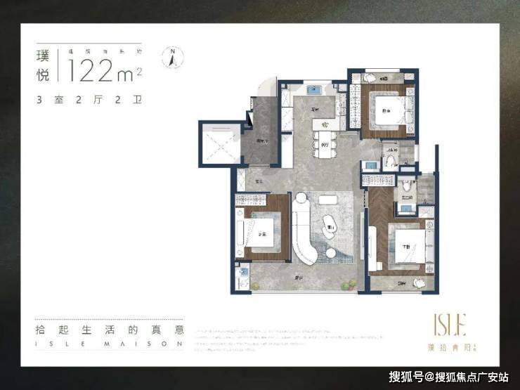 璞悦|建筑面积约122㎡三室两厅两卫户型