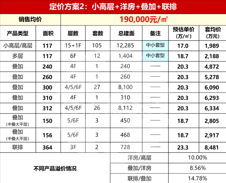 网传该项目的定价方案,也都是通过低密产品来溢价👇