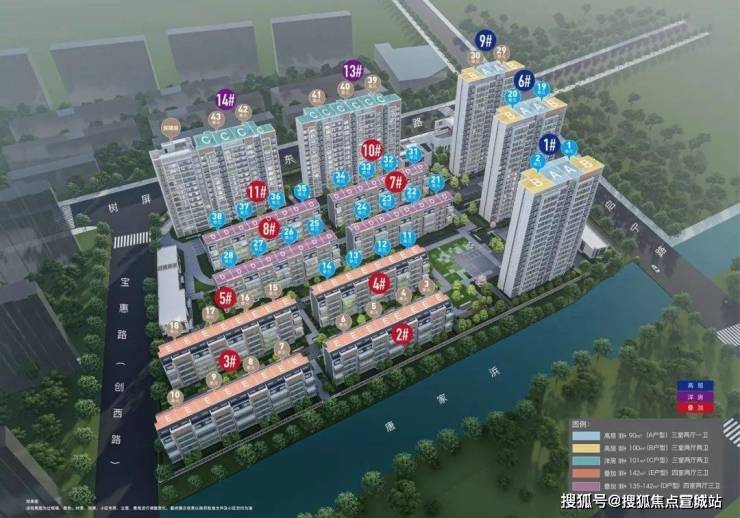 未来的业主,站在楼上就可尽享双重美景,目之所及,向外是碧波粼粼的河景或宁静的街景,朝内是丰富多彩的园区景观,每个角度都是享受。