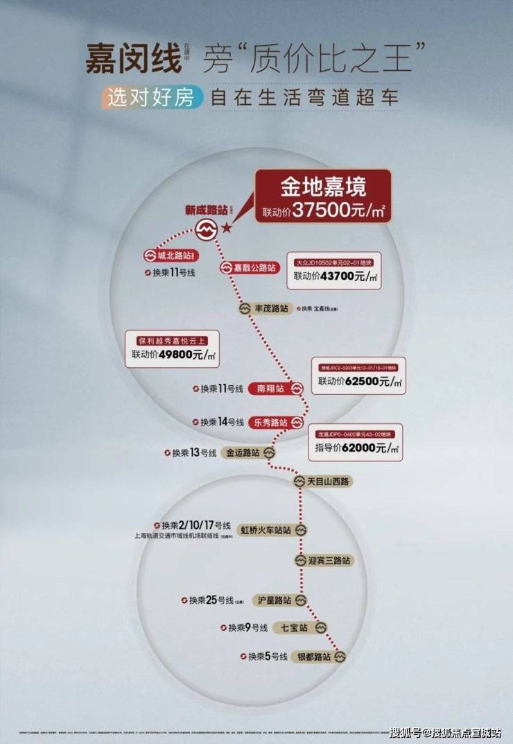 与此同时,徐行近邻S7沪崇高速、沪嘉高速、上海绕城高速,成熟高速路网通达全城,也形成了与长三角联系的多通道布局。更令人振奋的是沪通铁路(规划中)设站徐行,徐行将成为沿海长三角重要的一环!在建中的嘉闵线沿线旁的轨交盘,价格也基本都在4万+,而备案均价仅37000元/㎡的金地嘉境正是真刚需置业的契机!