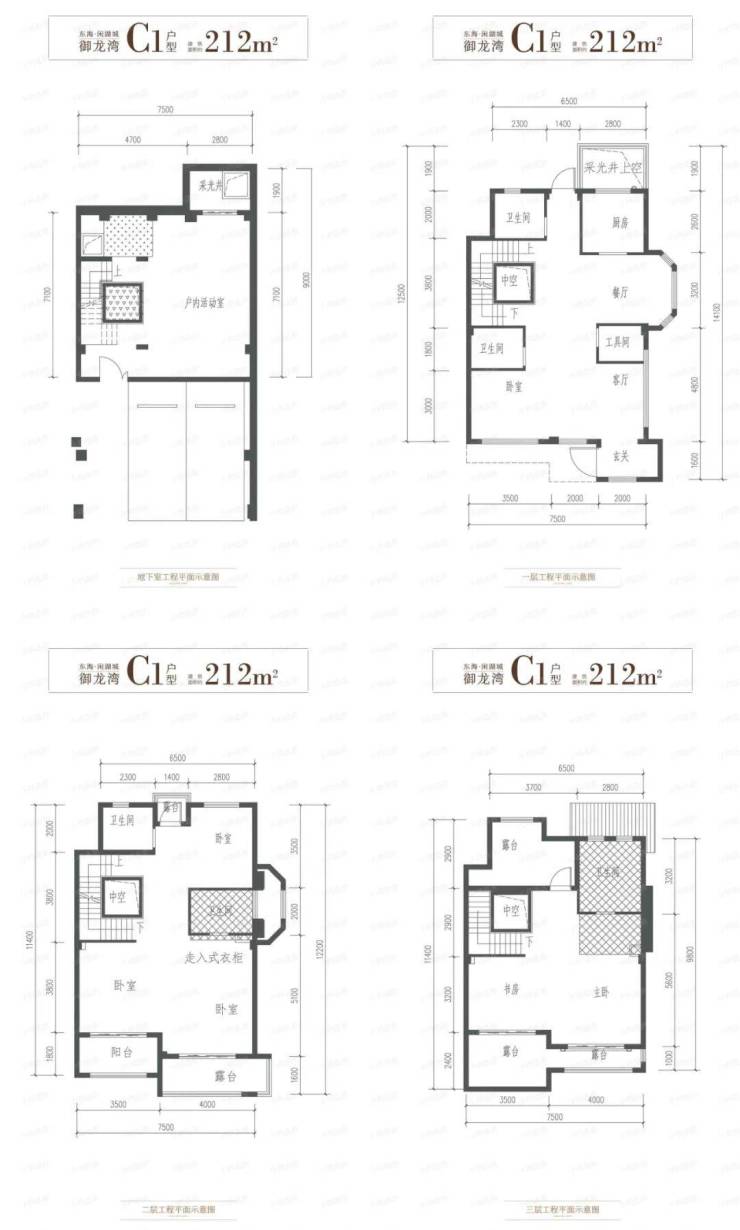 【户型面积】:约171㎡、约195㎡、约212㎡、约243㎡
