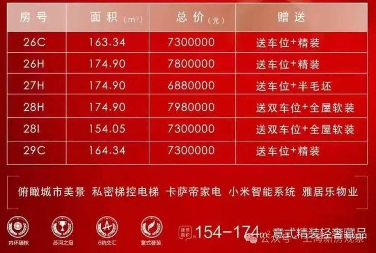 苏河云峰位于商住办综合体内,26-29层,在售高区建面约154-163-174㎡3房;总价约688-780万!意式精装 拎包可入住 不限购,价格不及旁边招商苏河玺的一半儿,日常租金、舒适度却与其不相上下。