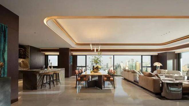 这次的天际大平层,中高区东向视野开阔,以无敌的视角将豫园、外滩、黄浦江和陆家嘴三件套尽收眼底;同时东北方向能对望古城公园盛景,南向可俯瞰项目自身的开明里人文风貌景致。