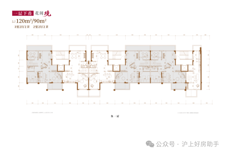 建面约120㎡3房2厅2卫/90㎡2房2厅2卫(一层下叠):