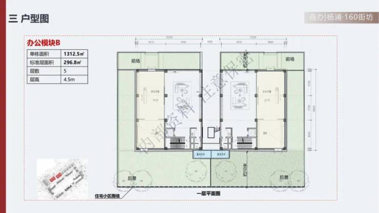 地上5层+地下1层,地上层高4.5米,地下层高5.25米。