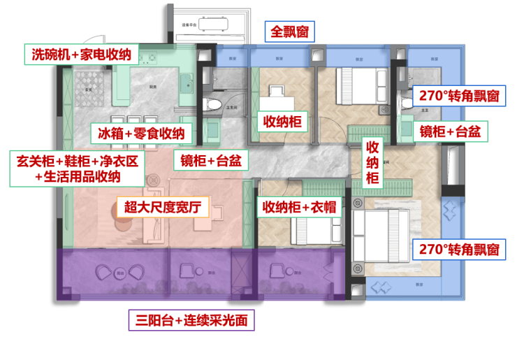 这样的设计,更是让业主额外拥有了好几个平方的面积作为家的延伸空间,实得面积再次“膨胀”!