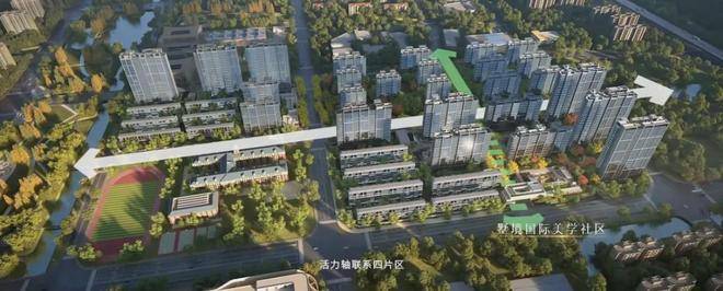 这些丰富的生活场景,则由两条景观轴线串联:一条是约300米的连续花园轴;一条是约600米的日常漫步街区。