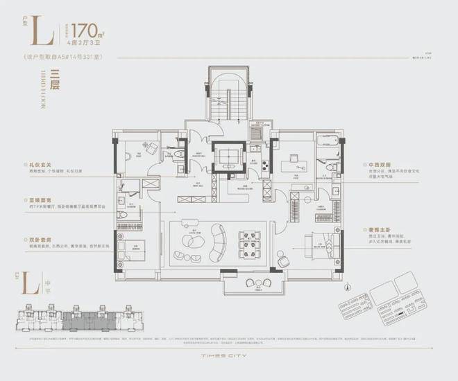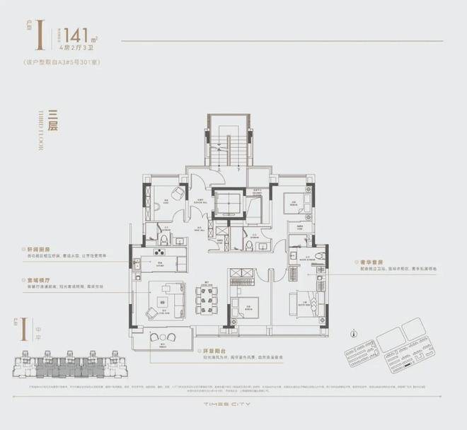 华润置地时代之城高层产品将百平上下的改善户型做出了轻奢级的居住体验,把约133㎡的改善四房做出了豪宅的尺度感。