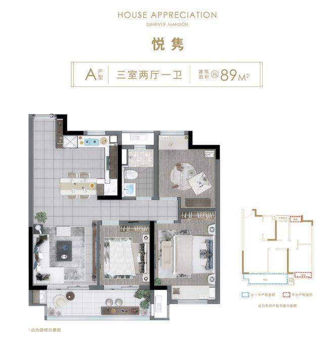 建筑面积约89-121m²的都会小高层,奢阔三房、四房,南向三开间,户户连体双开间阳台,超大景观视界,尽揽阳光美景,家庭欢娱怡然自得,悦享奢适生活。