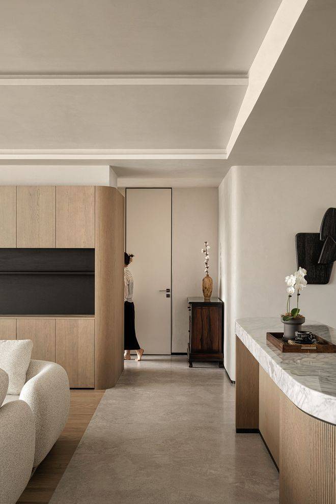 室内的家具秉持着“少即是多”的理念,赋予了生活更加轻盈的生活态度,伴随着和生活的升温,此处的时光也逐渐悠扬了下来。