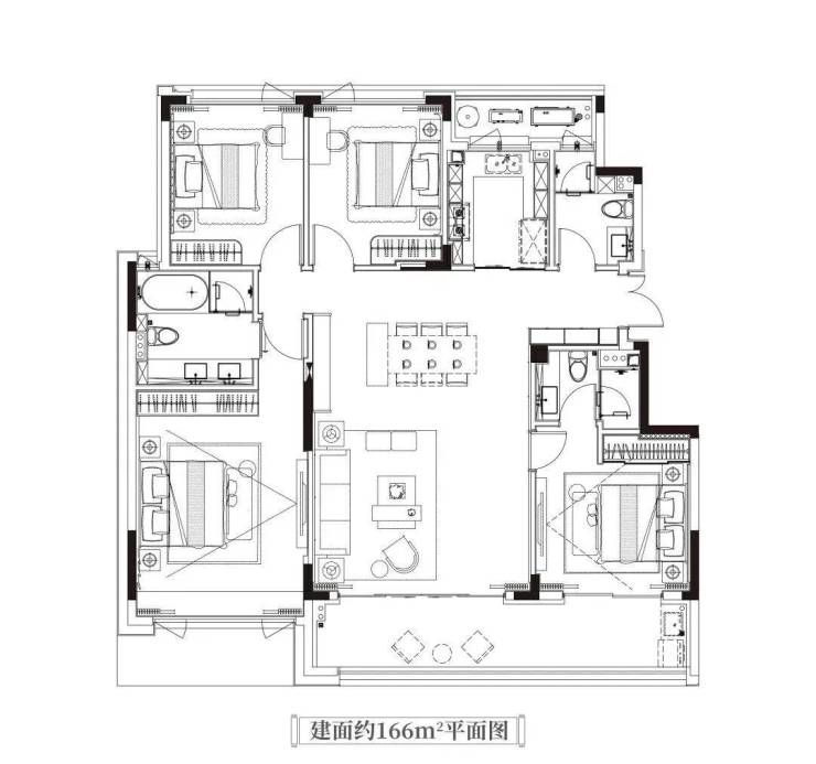 项目洋房建面约166m²平面图,存在调改可能,仅供参考