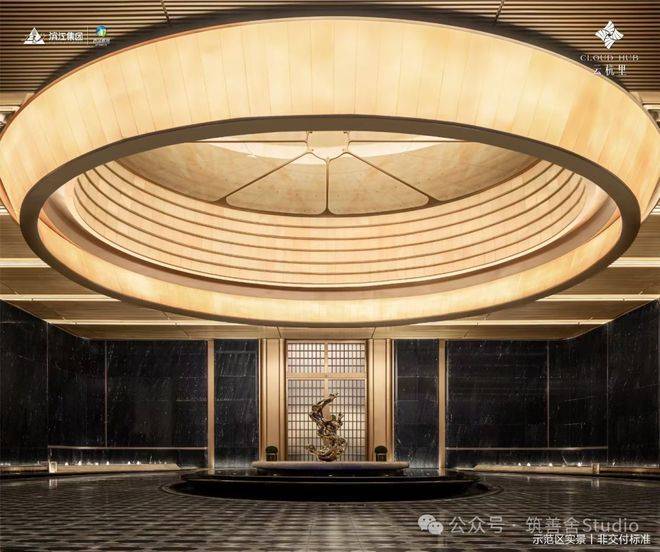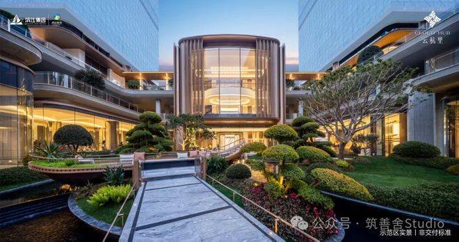 小区大门以“云扉初开”为灵感,打造具有仪式感的礼仪入口。宽约66米、高约8.6米的恢弘门庭,与酒店式归家大堂共同构筑,打造出极具仪式感的序厅,瞬间开启归家的尊崇心境。入口处精心打造的树阵水院,以静谧尊贵的氛围迎接归家。巧妙运用高差设计,通过层层递进的景观节点,优雅地引导业主步入社区深处。
