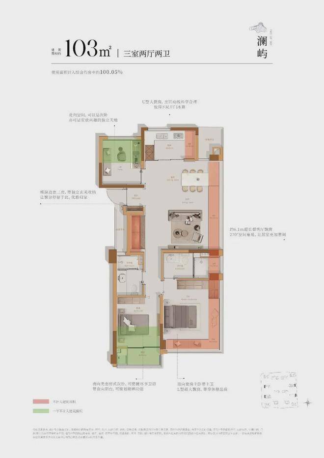 是小胖个人在全盘户型里,最为喜爱的三房边套设计,整体赠送的面积超过25方,空间利用率极高,客厅的飘窗超过6米,采光面巨大。