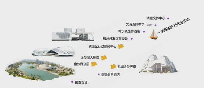 也不仅仅是金沙湖,沿着海达路驱车出行约2公里,你还能看到整个金沙湖CBD的精华:钱塘图书馆、钱塘问题中心、希尔顿酒店、金沙天街、金沙大剧院、银泰百货等都陈列在这条道上。
