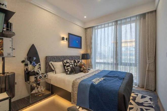 主卧更是直接升级为L型270度的飘窗,是市面上做转角飘窗里的最小户型。作为常见于豪宅才有的设计,这里三房户型也有,买到就是超值。