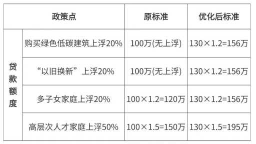 3、购买经认定为绿色低碳建筑的新建商品住房或“以旧换新”的,贷款额度可上浮20%;