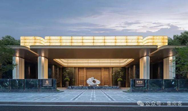如山茶花般的定制石雕,映衬厚重的朱氏铜门,配上两侧大面荷塘月色奢石、铂金钻石材景墙,远远望去,宛如歌剧开幕时垂坠的天鹅绒帷幔,打开归家的仪式感。