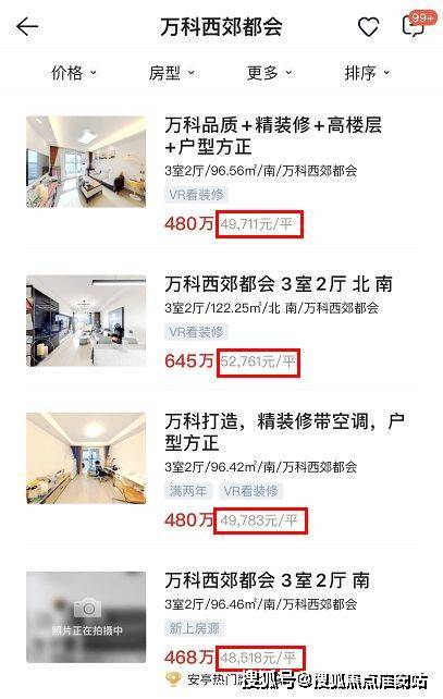 Not only that, according to the link home network public data show that "Dahua Wutongyue" near Vanke western suburbs will be second-hand housing listing prices have reached about 4.8w+ yuan /㎡!