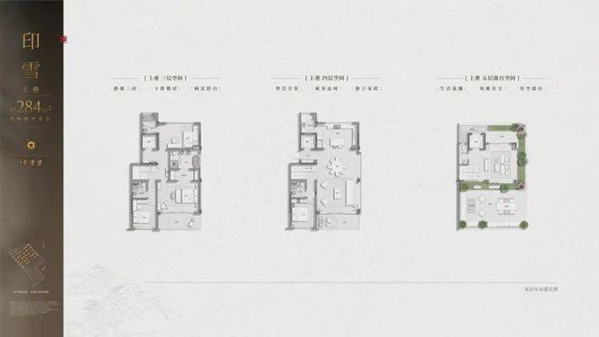 合院就更绝了!建面约296方,首层阳光空间,立体院落设计,叠加客厅、餐厅、阔绰卧室等,有天有地,一席难求;二、三层布局书房、多套房、星空露台等,在寸金寸土的都市,过上有情有调的院落生活,岂不美哉?