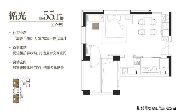 C|循光|建面约55.17m²|一室一厅一厨一卫