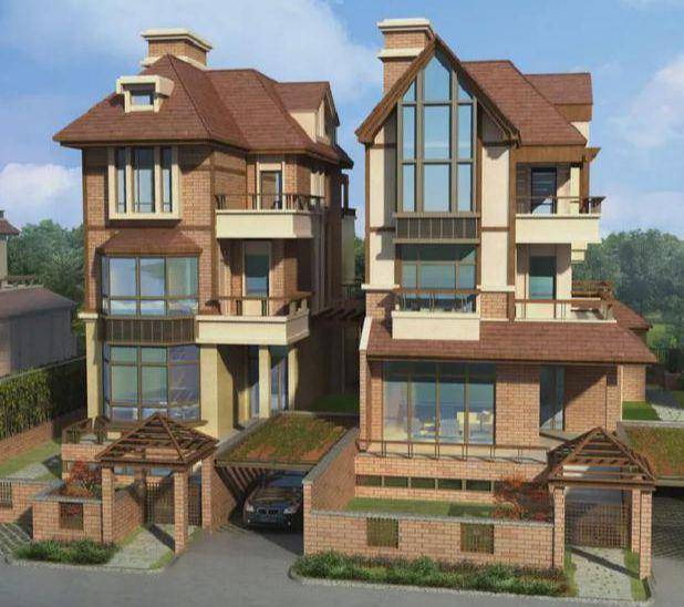 双拼别墅:南北双花园+独立车库设计,适合三代同堂居住。