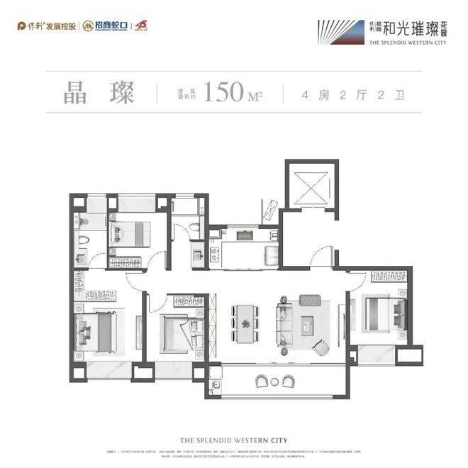 约150㎡改善起步标准,以最大约19.8m南向大面宽、超49㎡餐客厅、270°巨幕视野等尺度越级,洋房得房率约85%,极致升阶空间格局,成全顶奢家族生活的无界自由,气派的舒适度、细腻的享受感在此间和融交汇。