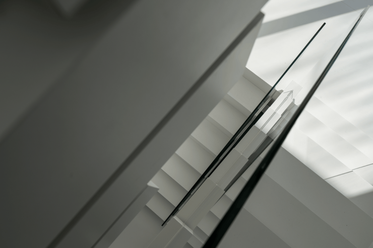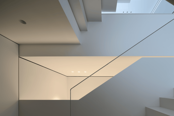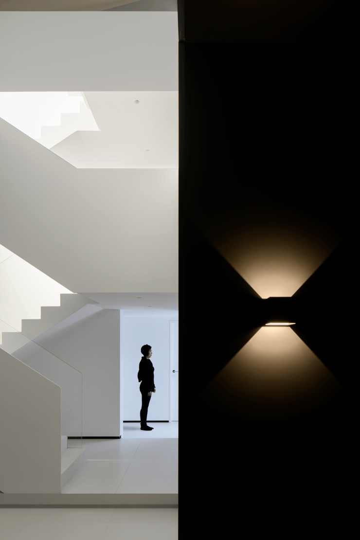 楼梯选用了纯白色,光是唯一的装饰品,在寻常中展现着空间最为纯粹的美。