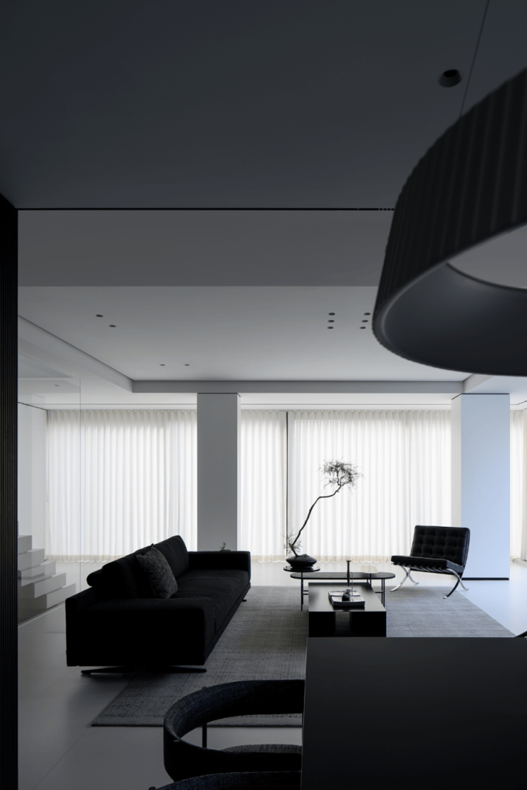 黑色系家具位于白色系的室内,形成了唯美的对照,同时也进一步丰富了空间内在,在知性之中,更显从容之美。