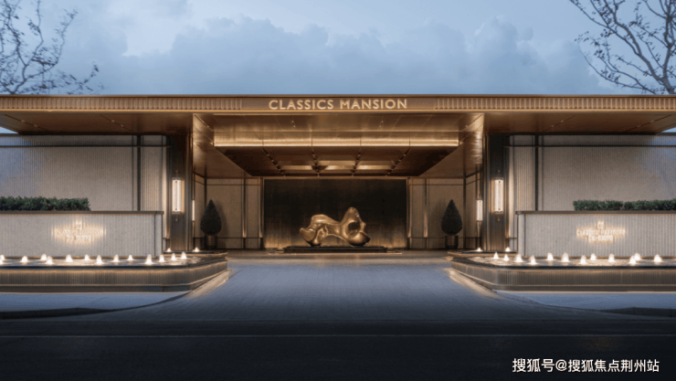 约6米高35米宽的奢华门头+舒适的42㎡车马院落客区,打造酒店式社区归家玄关。