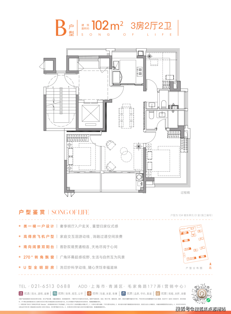 保利虹桥和颂·栖岸售楼处电话☎:400-9016-520建面约102㎡3房2厅2卫