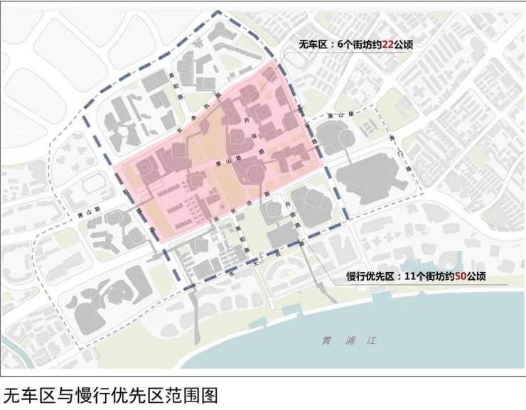 约50公顷慢行优先区(含22公顷无车区)的规划,超越纽约时代广场的纯步行区和东京丸之内商务区,将地面空间还给行人与商业;