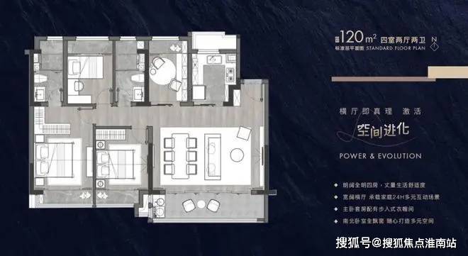 建筑面积约102-143㎡进阶户型带来全生命周期的舒居空间,全横厅设计诠释大尺度场景,阔境阳台、主卧套房设计,配备有独立卫生间和衣帽间,满足面面俱到的理想人居。