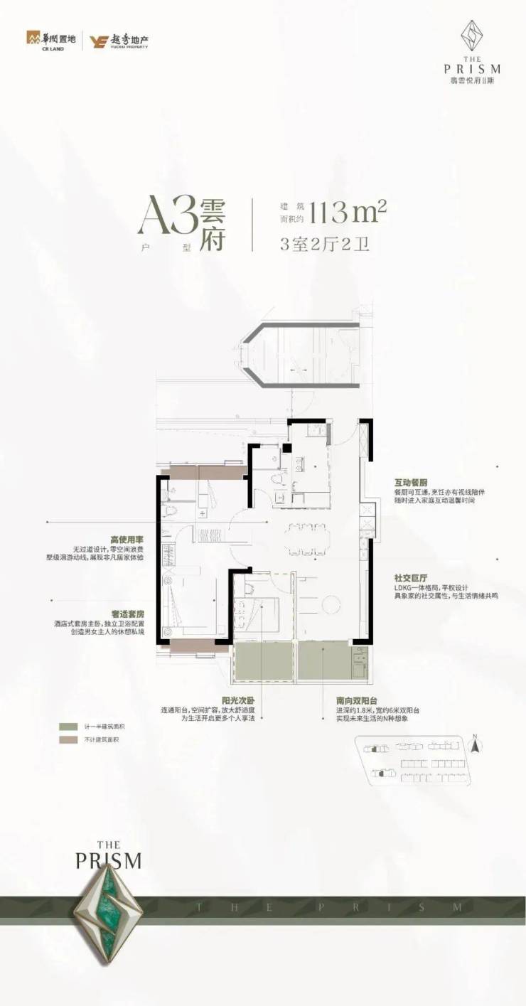 二期113㎡三室两厅两卫户型图,一共三种,每一种都透着华润对刚需的小心思。