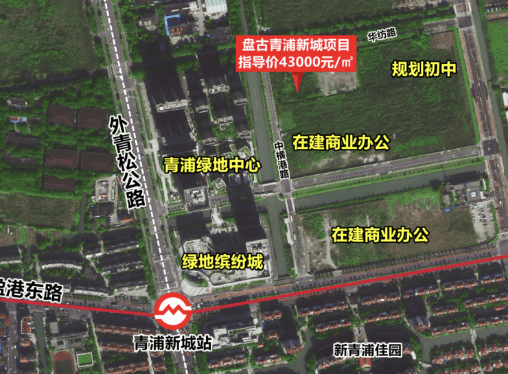 2021年12月12日,上海盘谷房地产有限公司以底价109615万元竞得青浦区夏阳街道中横泾路东侧06A-01地块,楼板价17100元/㎡, 房地联动价43000元/㎡!