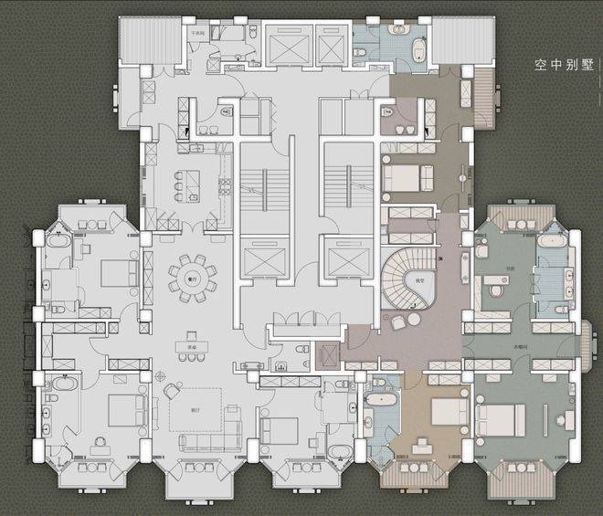 以2号楼为例 总高39层;实际住宅36层;1栋楼分2个单元 每个单元2梯2户;每两个楼层2个单元共6户大宅,370㎡平层(两个楼层2个单元共4套),680㎡复式(两个楼层2个单元共2套)另传最终交付时候可能会有户型定制