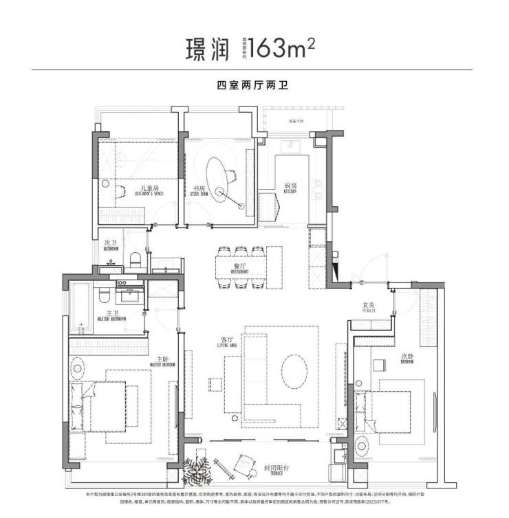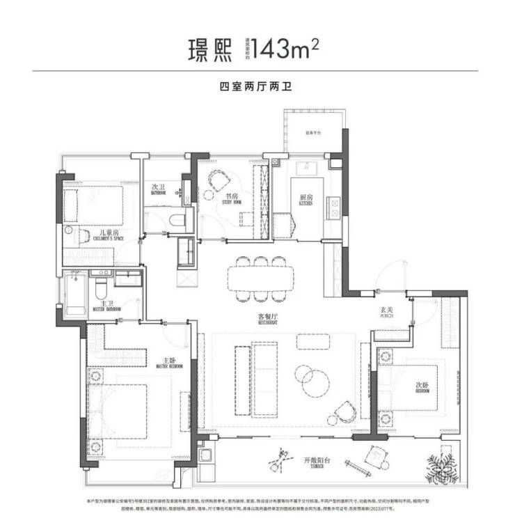 约9.3m宽境阳台,空间通透开阔,生活进退有序